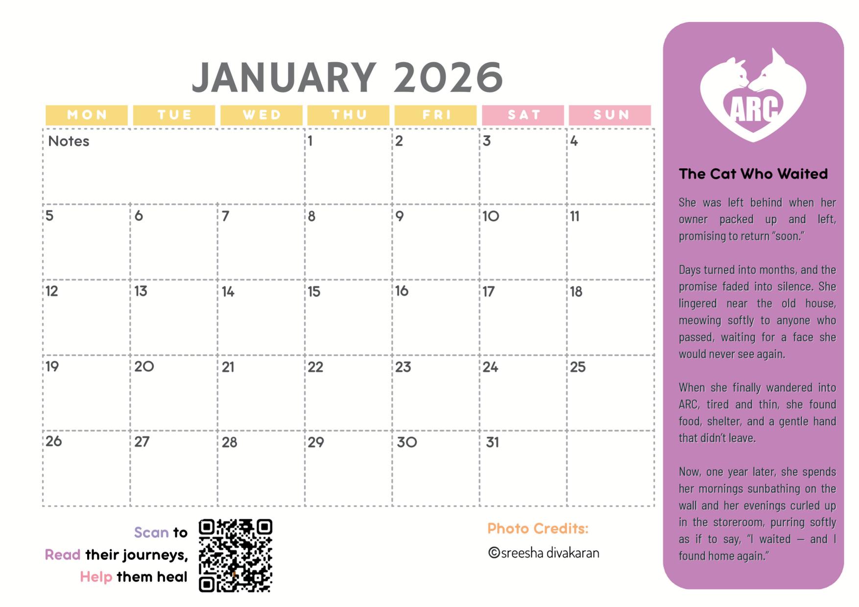 The ARC 2026 Calendar is here! Each month features a new story from the animals under our care.